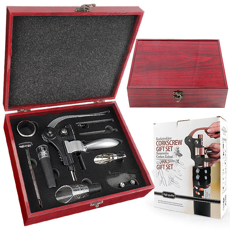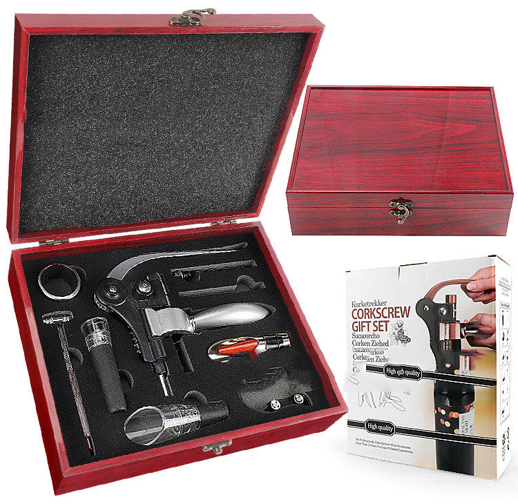 Bottle opener*1, paper cutter*1, wine ring*1, wine pourer*2, wine thermometer*1, vacuum stopper*1, wire drill*2