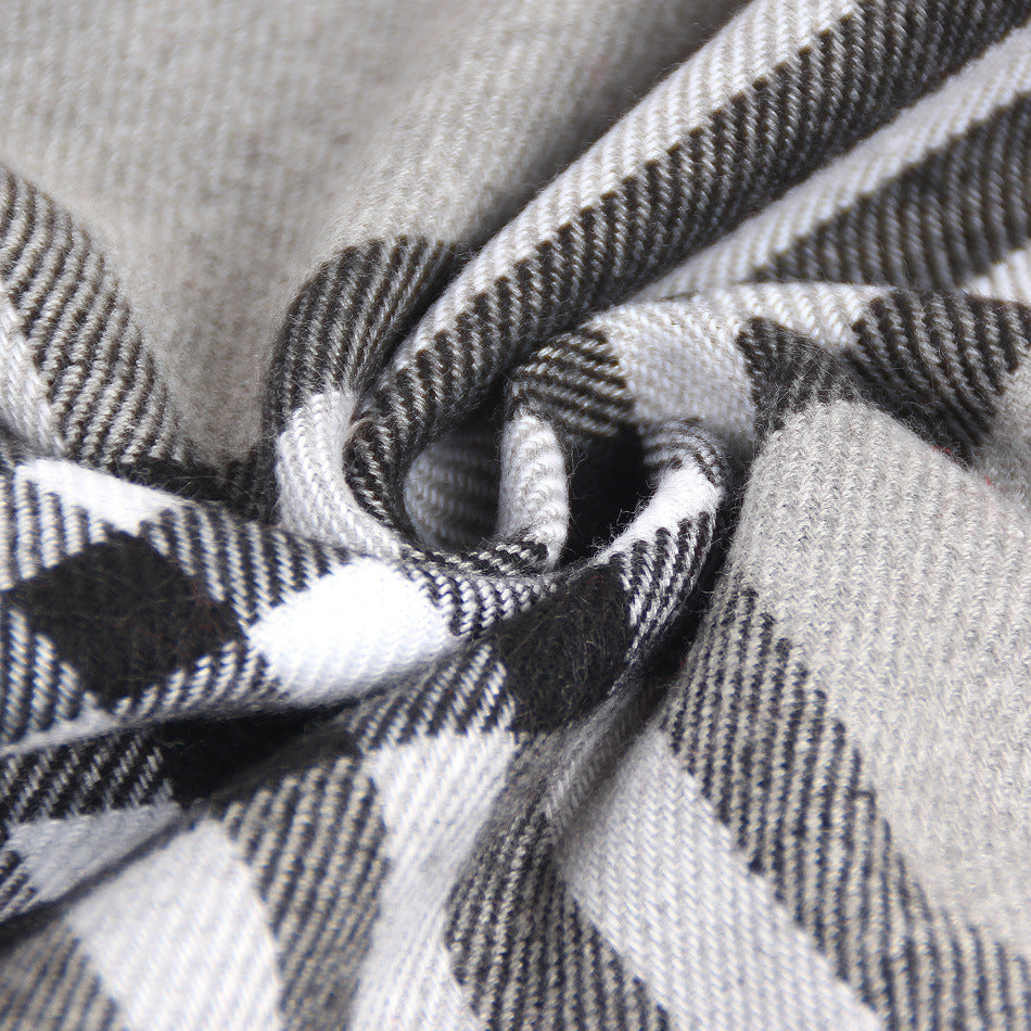 Product Details Function: Keep warm Material: imitation cashmere Pattern: Check Color classification: black, white, gray, khaki, light khaki Applicable season: winter packing list Scarf x1