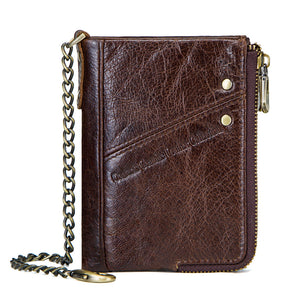 Multifunctional Double Zipper Top Layer Cowhide Coin Purse Men's Bag