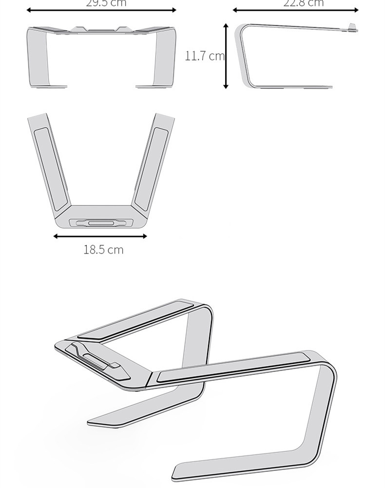 It is made of high-quality aluminum alloy, strong and durable. The silicone pad on the top of the stand is durable and non-slip, which protects the computer from scratches and slips. The silicone pad at the bottom of the stand can ensure the stability of the product even when typing.