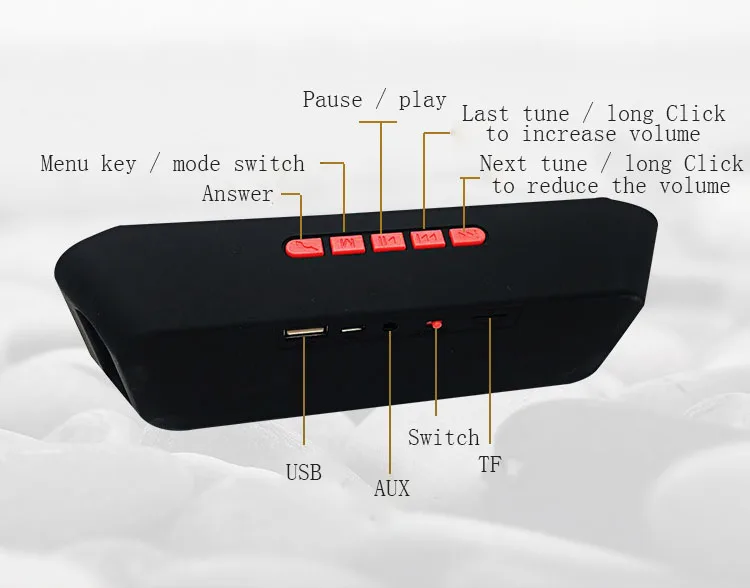 Function: Insert U disk, audio input, voice prompt, card, radio, call function